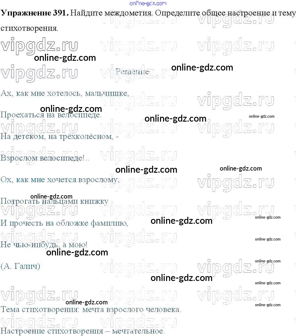 Готовые домашние задания по Русскому языку за 8 класс Учебник Тростенцова, Ладыженская 2014 - Упражнения 391