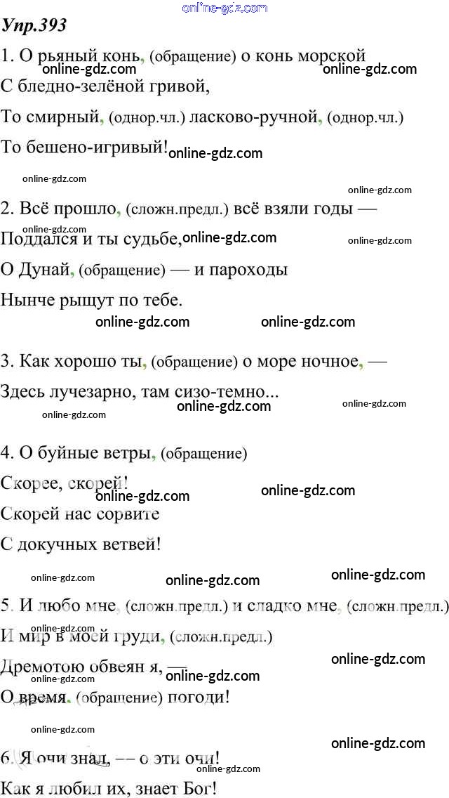 Готовые домашние задания по Русскому языку за 8 класс Учебник Тростенцова, Ладыженская 2014 - Упражнения 393