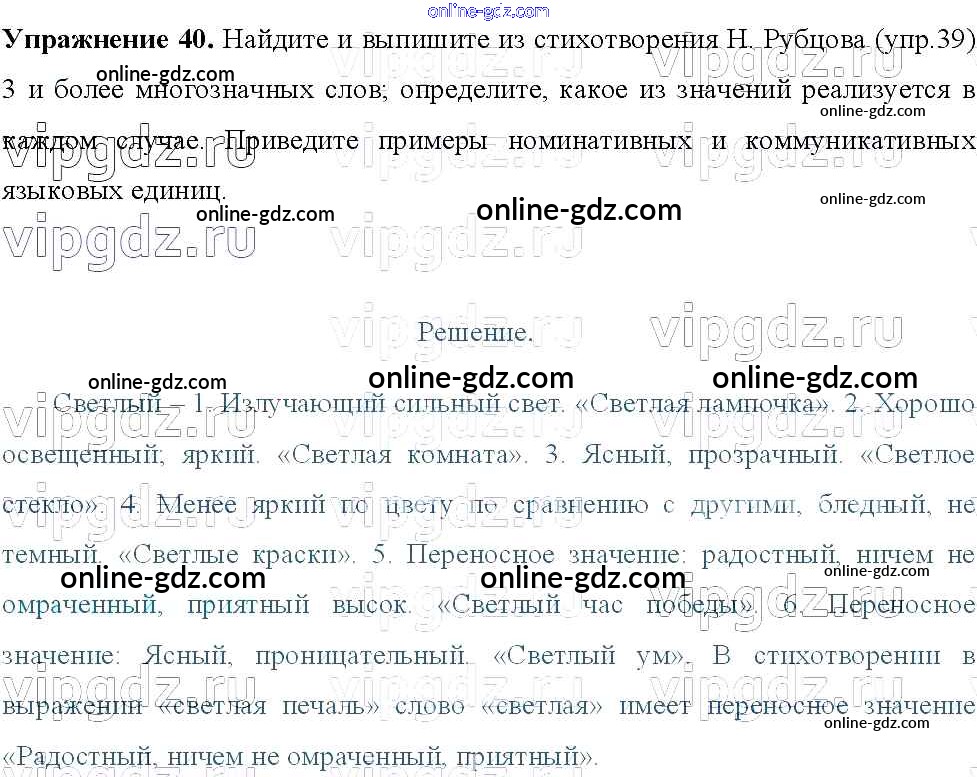 Готовые домашние задания по Русскому языку за 8 класс Учебник Тростенцова, Ладыженская 2014 - Упражнения 40