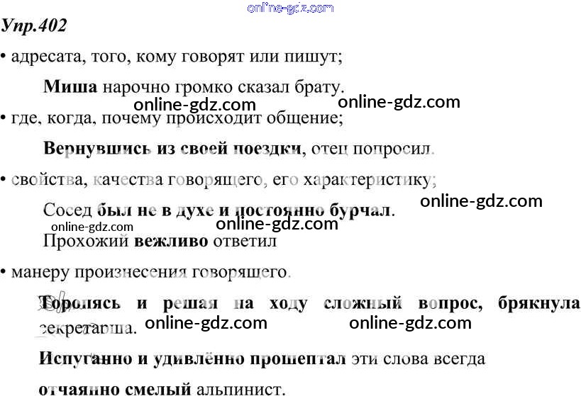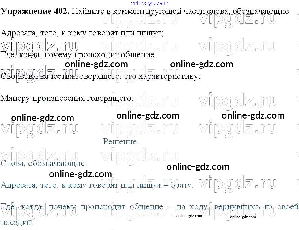 Готовые домашние задания по Русскому языку за 8 класс Учебник Тростенцова, Ладыженская 2014 - Упражнения 402