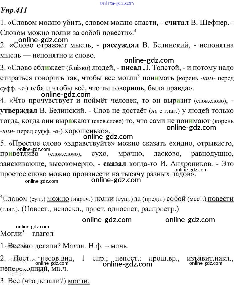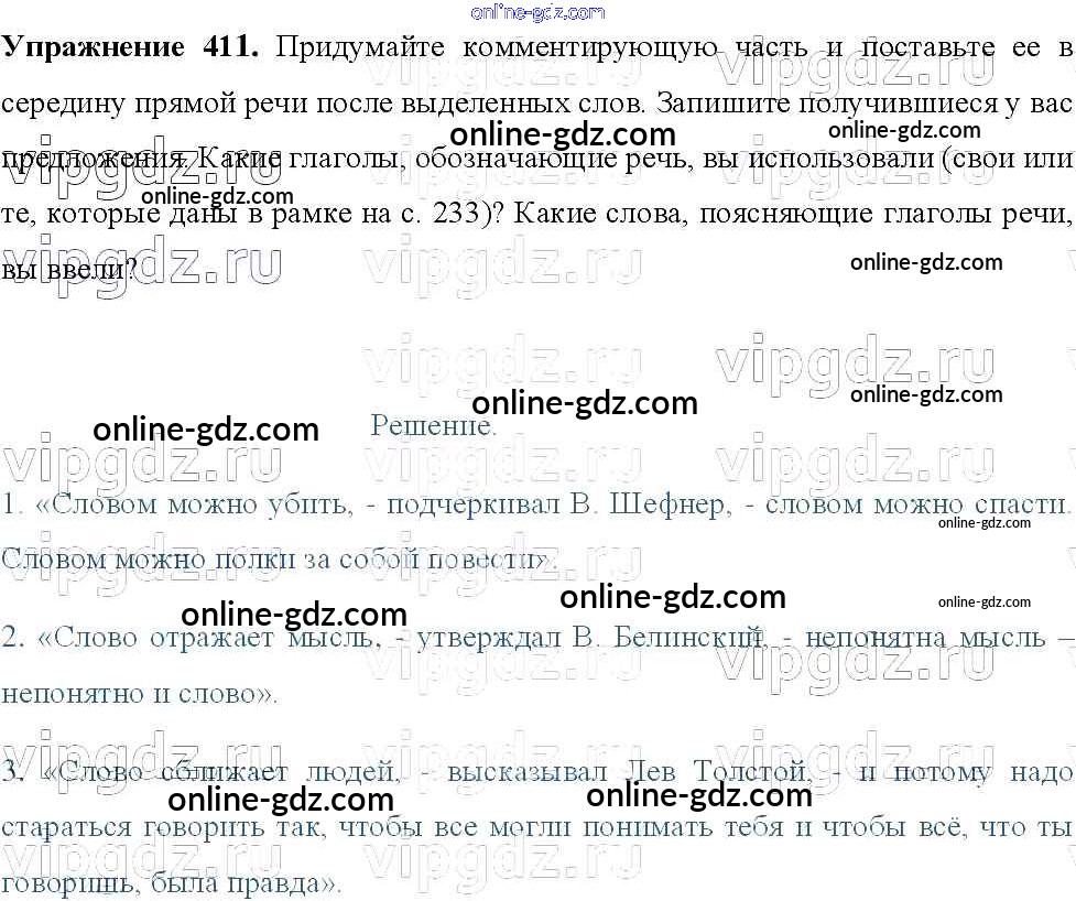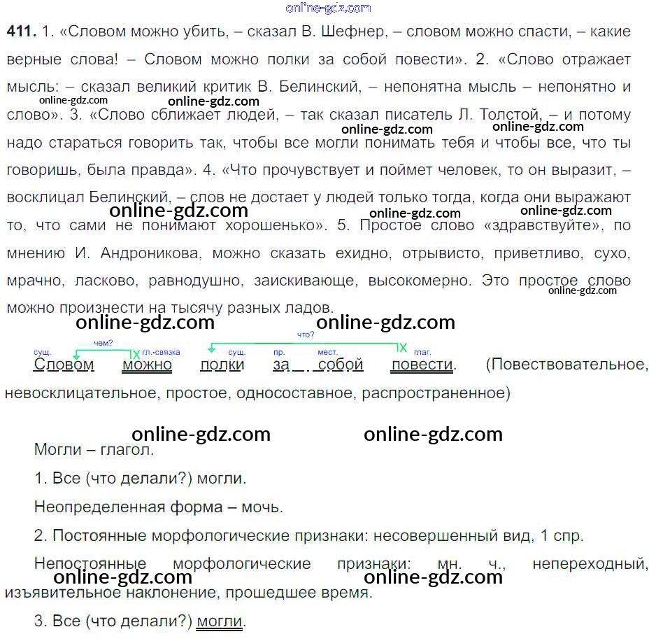 Готовые домашние задания по Русскому языку за 8 класс Учебник Тростенцова, Ладыженская 2014 - Упражнения 411