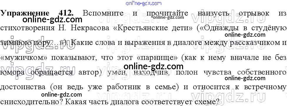 Готовые домашние задания по Русскому языку за 8 класс Учебник Тростенцова, Ладыженская 2014 - Упражнения 412