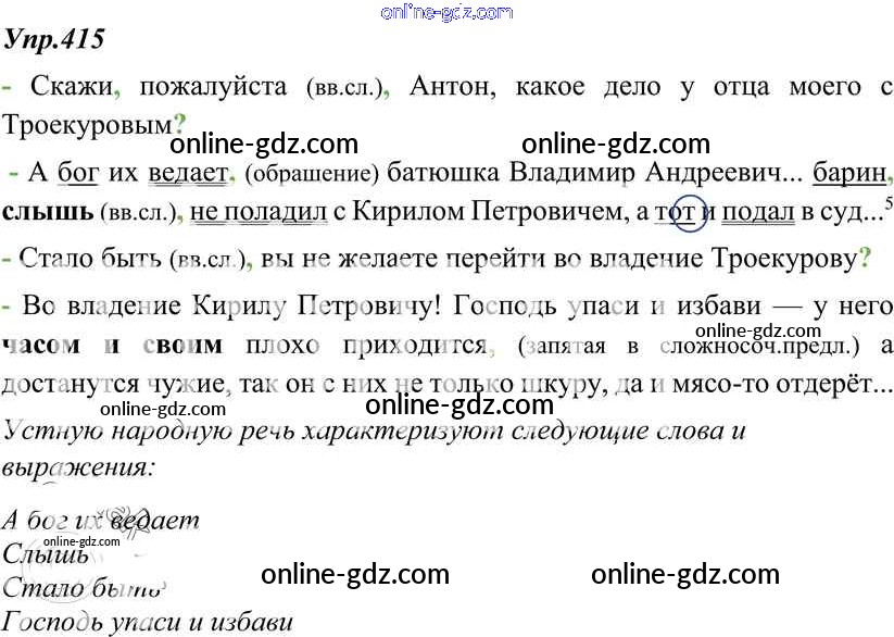 Готовые домашние задания по Русскому языку за 8 класс Учебник Тростенцова, Ладыженская 2014 - Упражнения 415