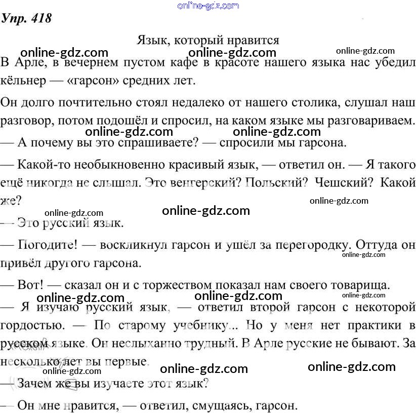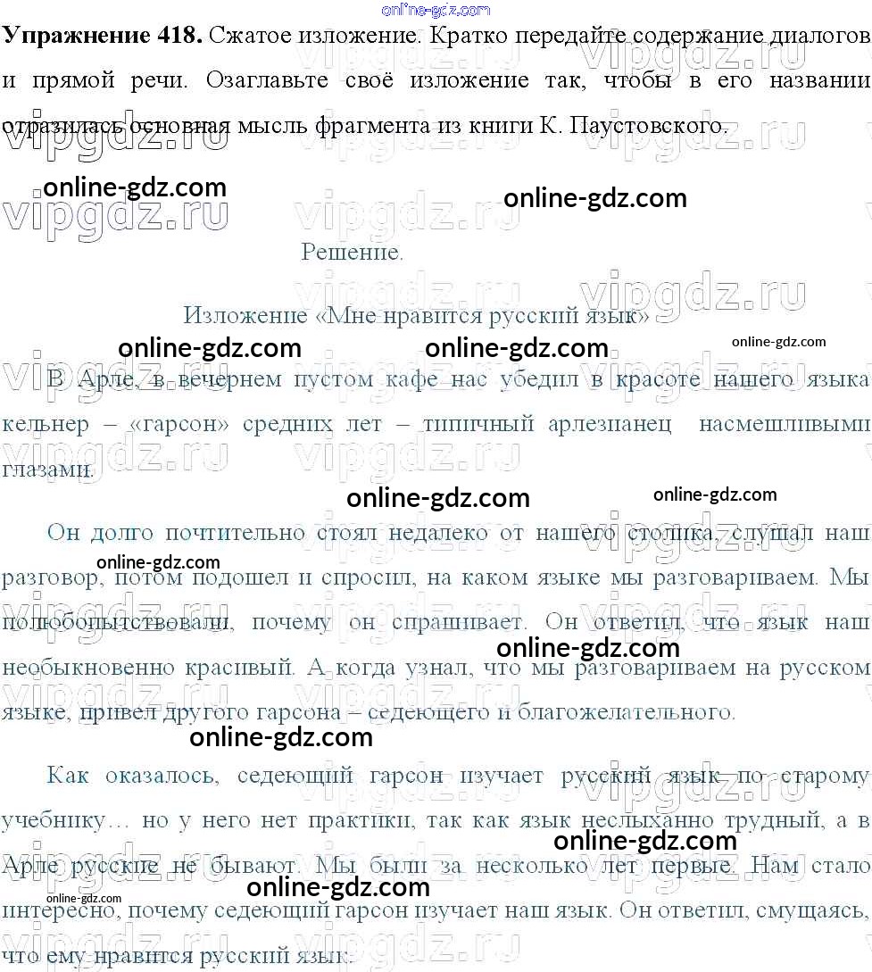 Готовые домашние задания по Русскому языку за 8 класс Учебник Тростенцова, Ладыженская 2014 - Упражнения 418
