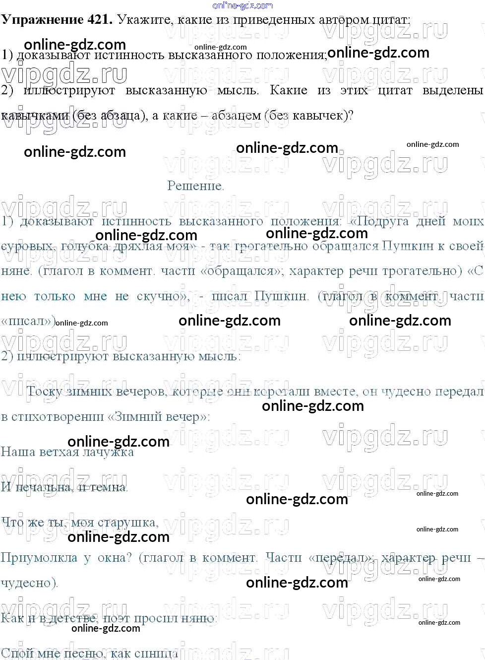 Готовые домашние задания по Русскому языку за 8 класс Учебник Тростенцова, Ладыженская 2014 - Упражнения 421