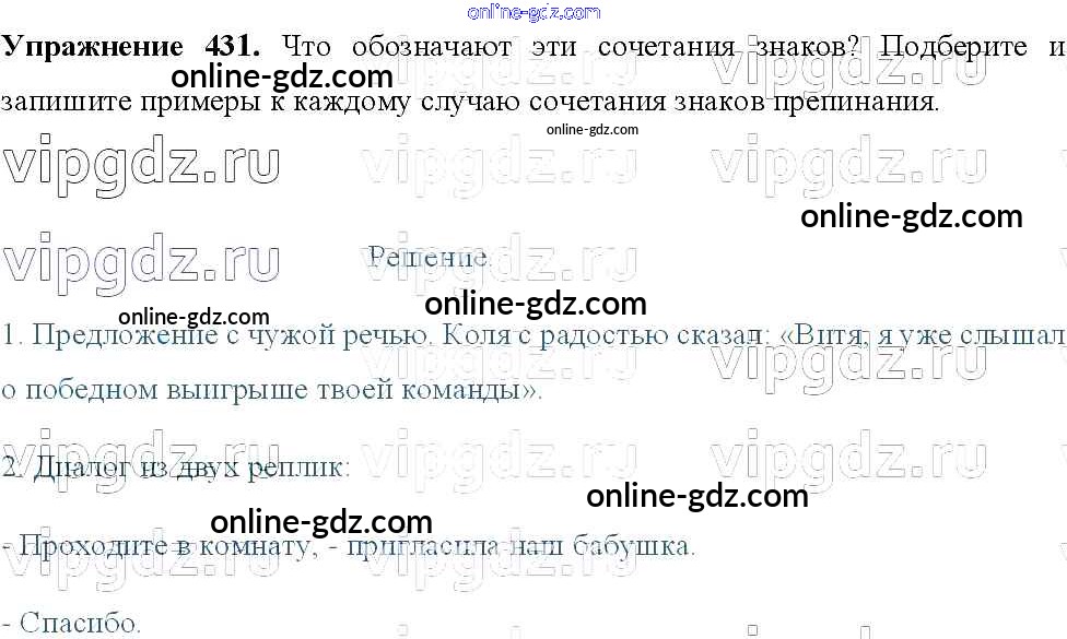 Готовые домашние задания по Русскому языку за 8 класс Учебник Тростенцова, Ладыженская 2014 - Упражнения 431
