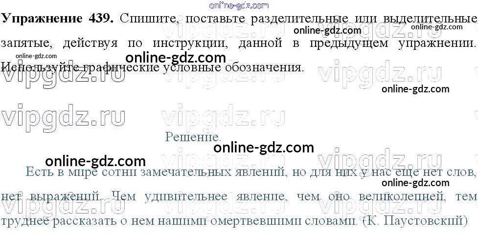 Готовые домашние задания по Русскому языку за 8 класс Учебник Тростенцова, Ладыженская 2014 - Упражнения 439