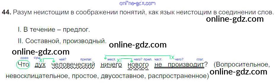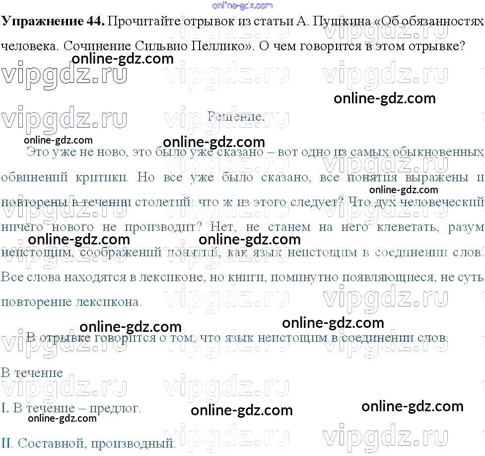 Готовые домашние задания по Русскому языку за 8 класс Учебник Тростенцова, Ладыженская 2014 - Упражнения 44