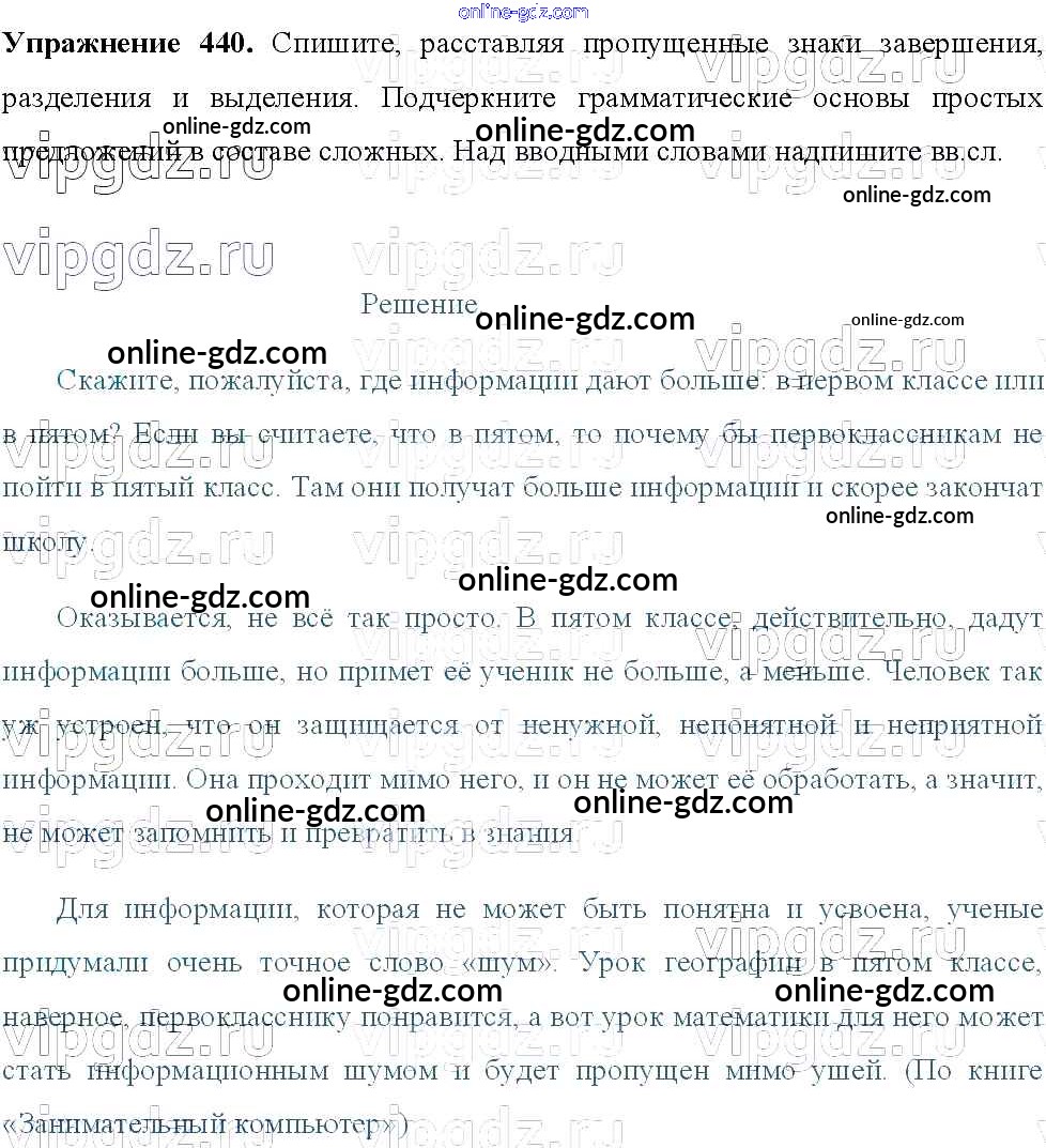 Готовые домашние задания по Русскому языку за 8 класс Учебник Тростенцова, Ладыженская 2014 - Упражнения 440