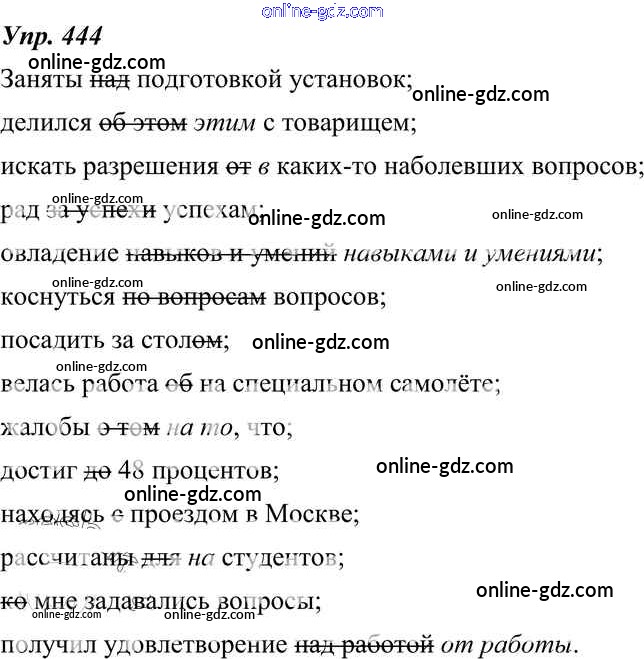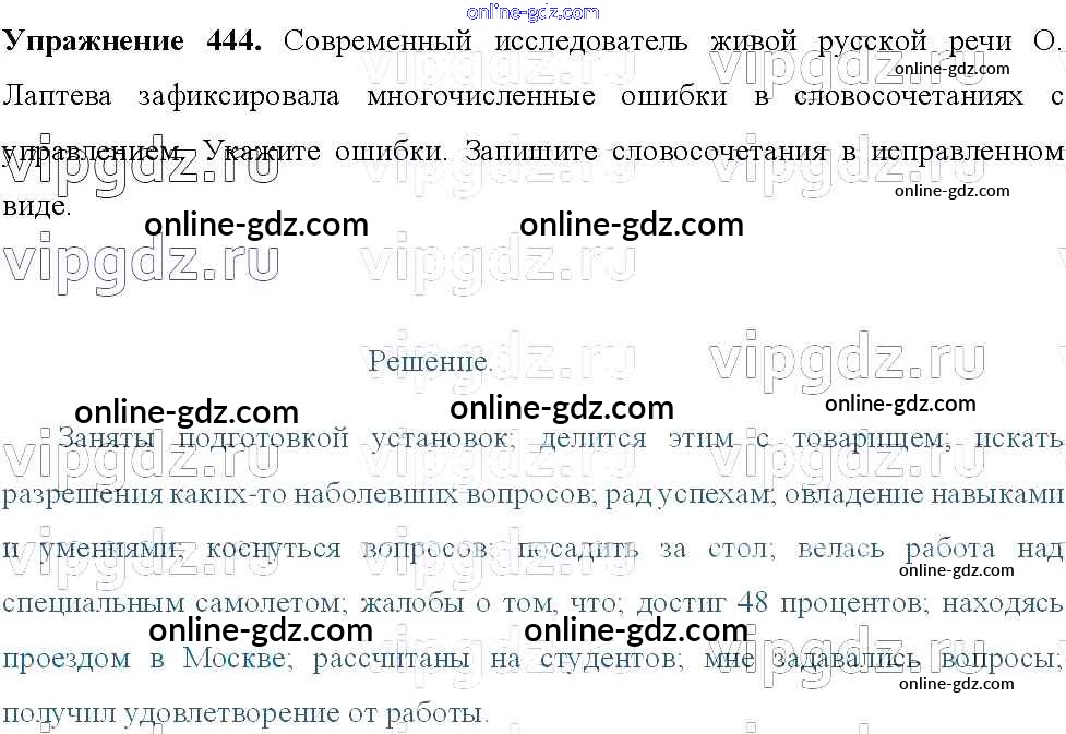 Готовые домашние задания по Русскому языку за 8 класс Учебник Тростенцова, Ладыженская 2014 - Упражнения 444