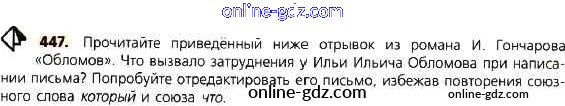 Готовые домашние задания по Русскому языку за 8 класс Учебник Тростенцова, Ладыженская 2014 - Упражнения 447