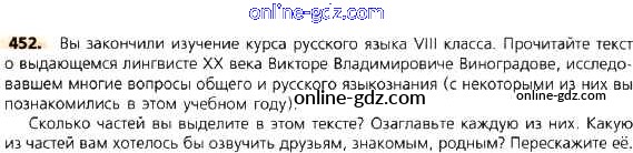 Готовые домашние задания по Русскому языку за 8 класс Учебник Тростенцова, Ладыженская 2014 - Упражнения 452