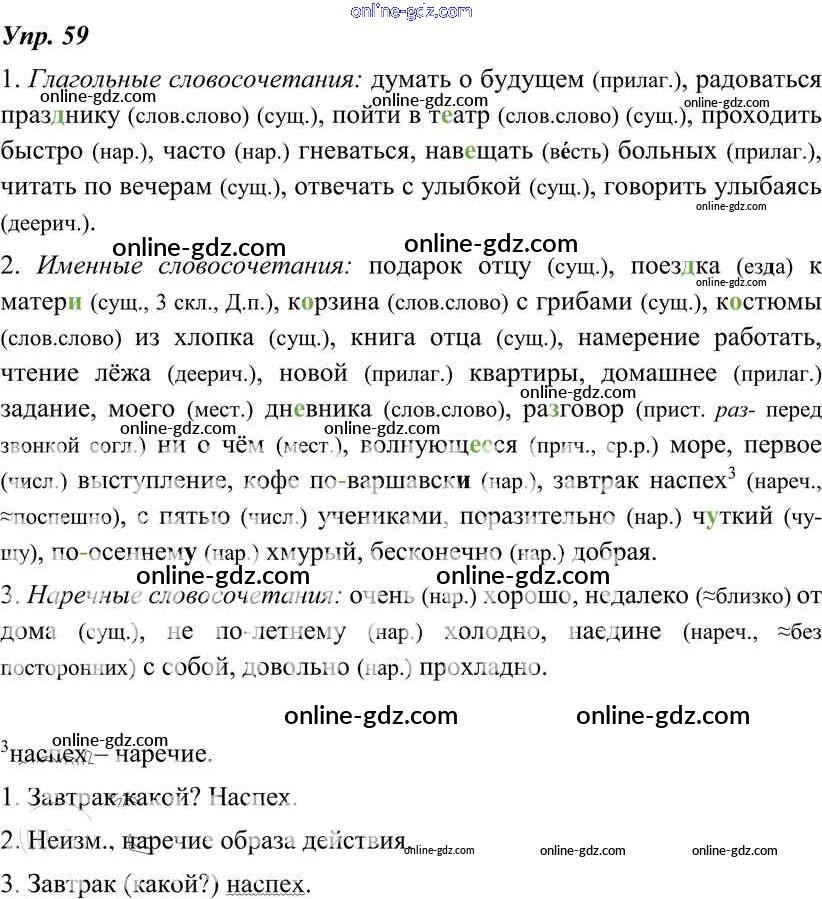 Готовые домашние задания по Русскому языку за 8 класс Учебник Тростенцова, Ладыженская 2014 - Упражнения 59