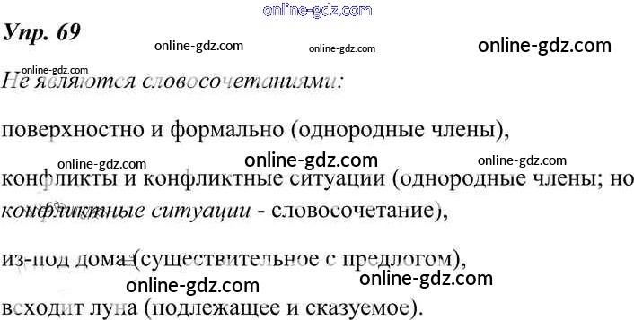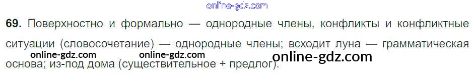 Готовые домашние задания по Русскому языку за 8 класс Учебник Тростенцова, Ладыженская 2014 - Упражнения 69