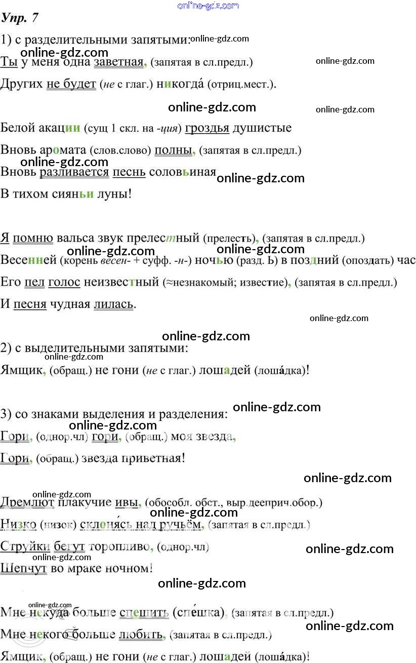 Готовые домашние задания по Русскому языку за 8 класс Учебник Тростенцова, Ладыженская 2014 - Упражнения 7