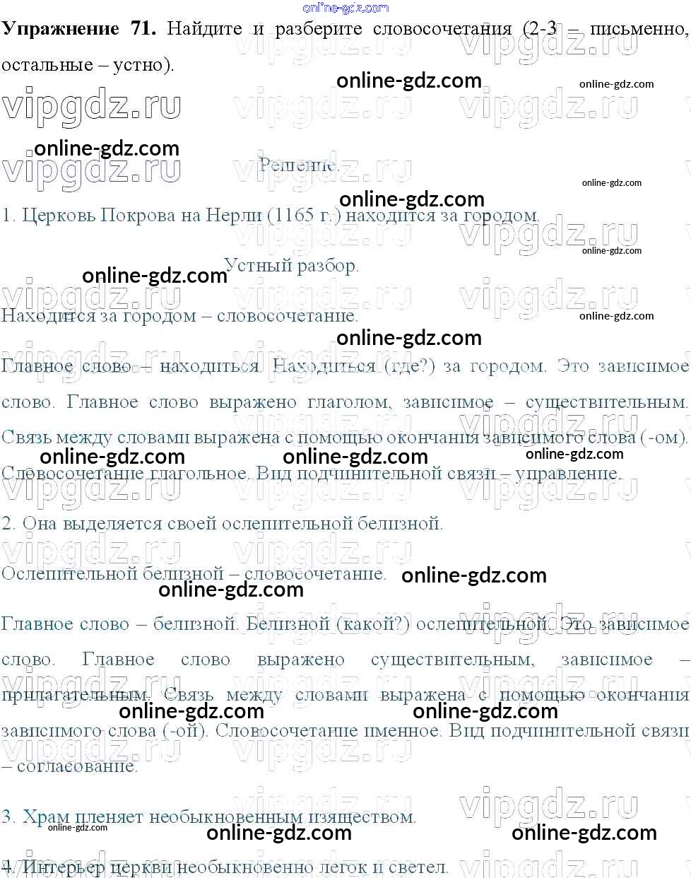 Готовые домашние задания по Русскому языку за 8 класс Учебник Тростенцова, Ладыженская 2014 - Упражнения 71