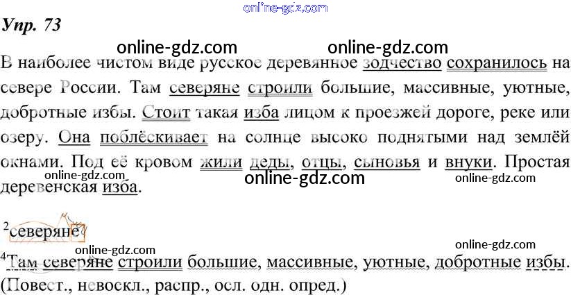Готовые домашние задания по Русскому языку за 8 класс Учебник Тростенцова, Ладыженская 2014 - Упражнения 73