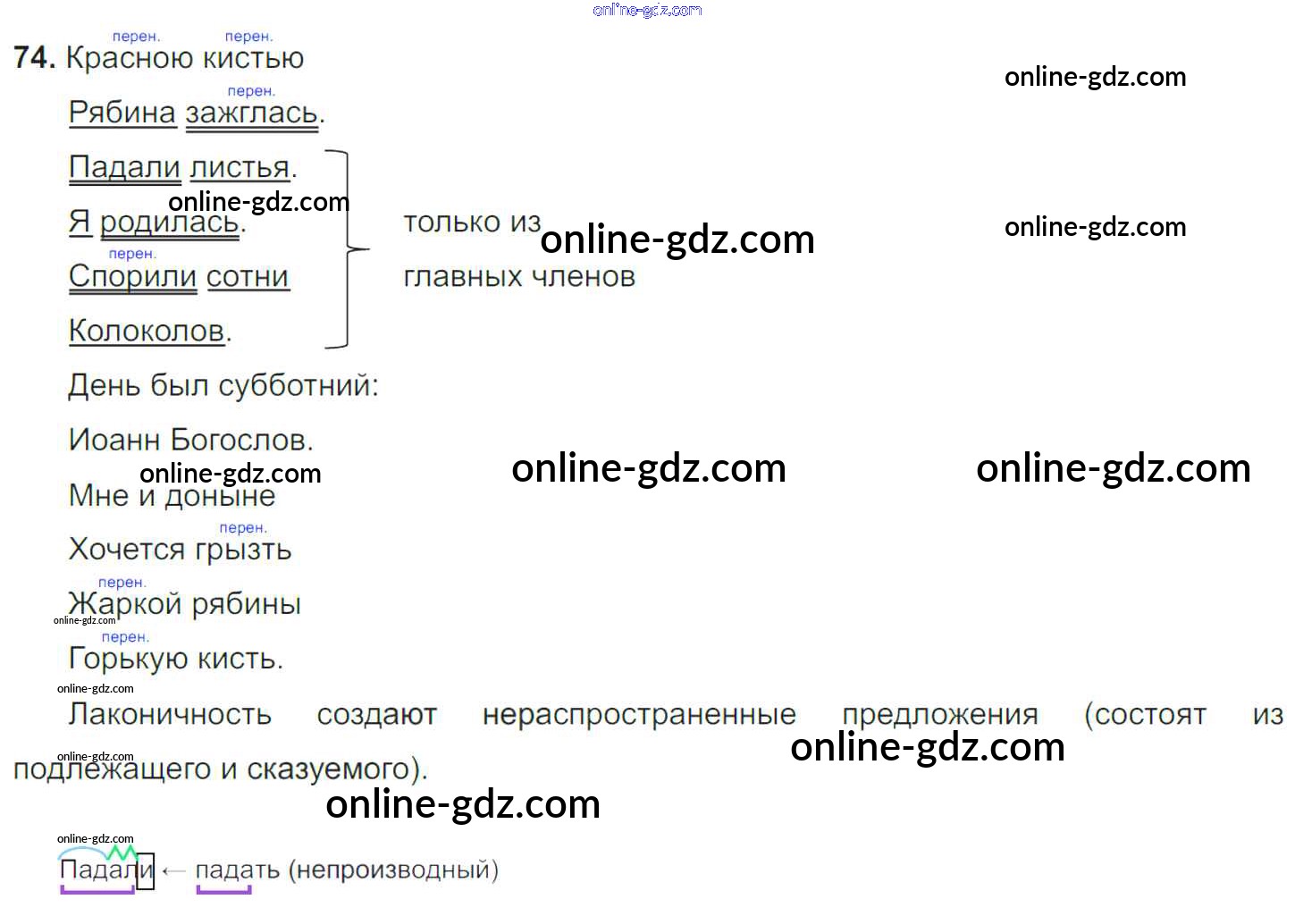 Готовые домашние задания по Русскому языку за 8 класс Учебник Тростенцова, Ладыженская 2014 - Упражнения 74