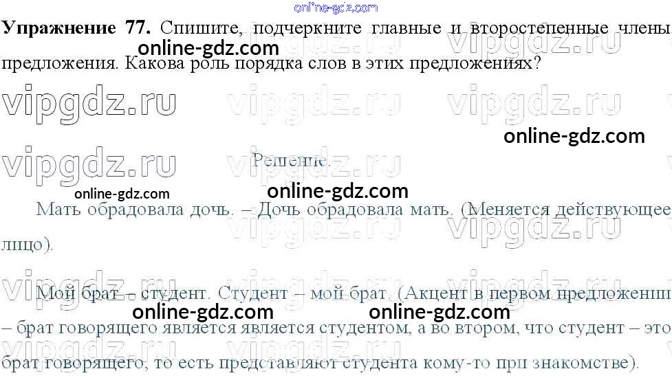 Готовые домашние задания по Русскому языку за 8 класс Учебник Тростенцова, Ладыженская 2014 - Упражнения 77