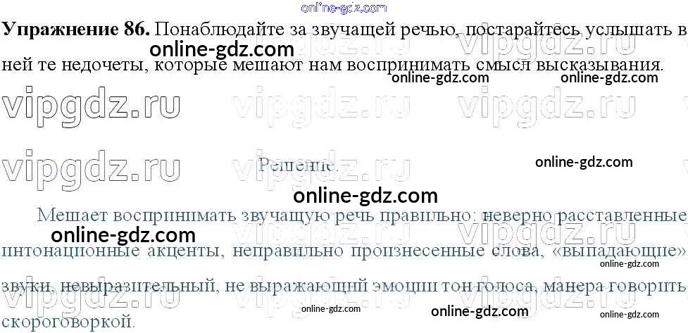 Готовые домашние задания по Русскому языку за 8 класс Учебник Тростенцова, Ладыженская 2014 - Упражнения 86