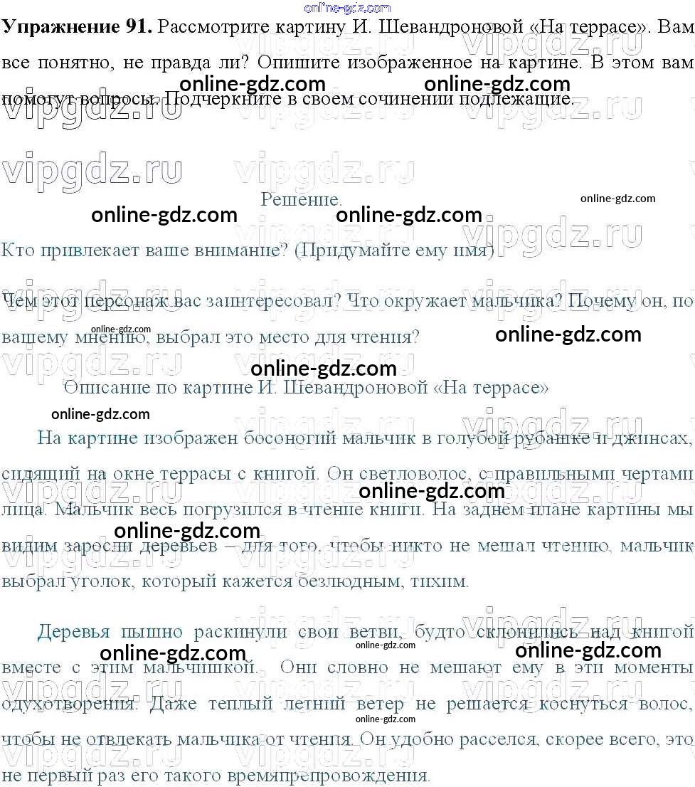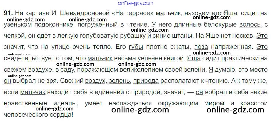 Готовые домашние задания по Русскому языку за 8 класс Учебник Тростенцова, Ладыженская 2014 - Упражнения 91