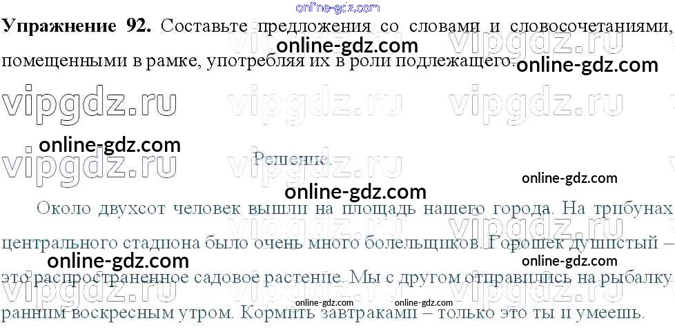 Готовые домашние задания по Русскому языку за 8 класс Учебник Тростенцова, Ладыженская 2014 - Упражнения 92