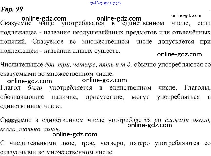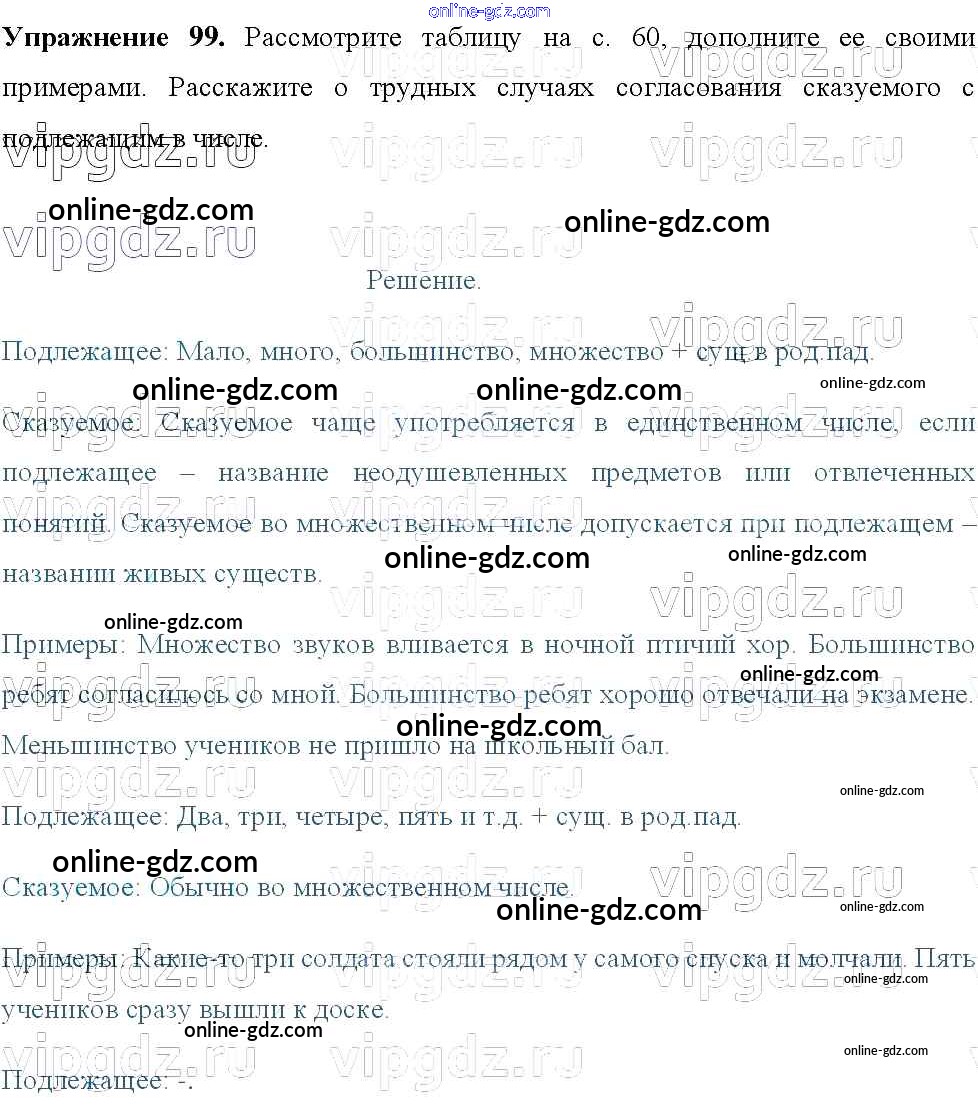 Готовые домашние задания по Русскому языку за 8 класс Учебник Тростенцова, Ладыженская 2014 - Упражнения 99