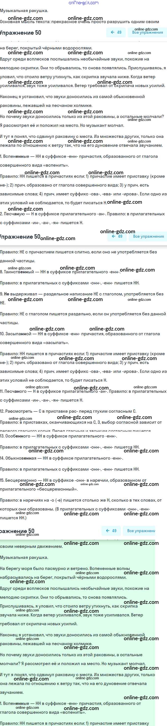 Готовые домашние задания по Русскому языку за 9 класс Рабочая тетрадь Ефремова УМК 2017 - Упражнения 50