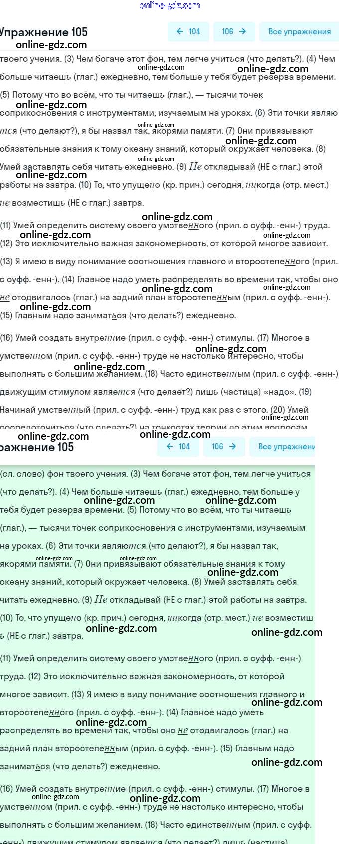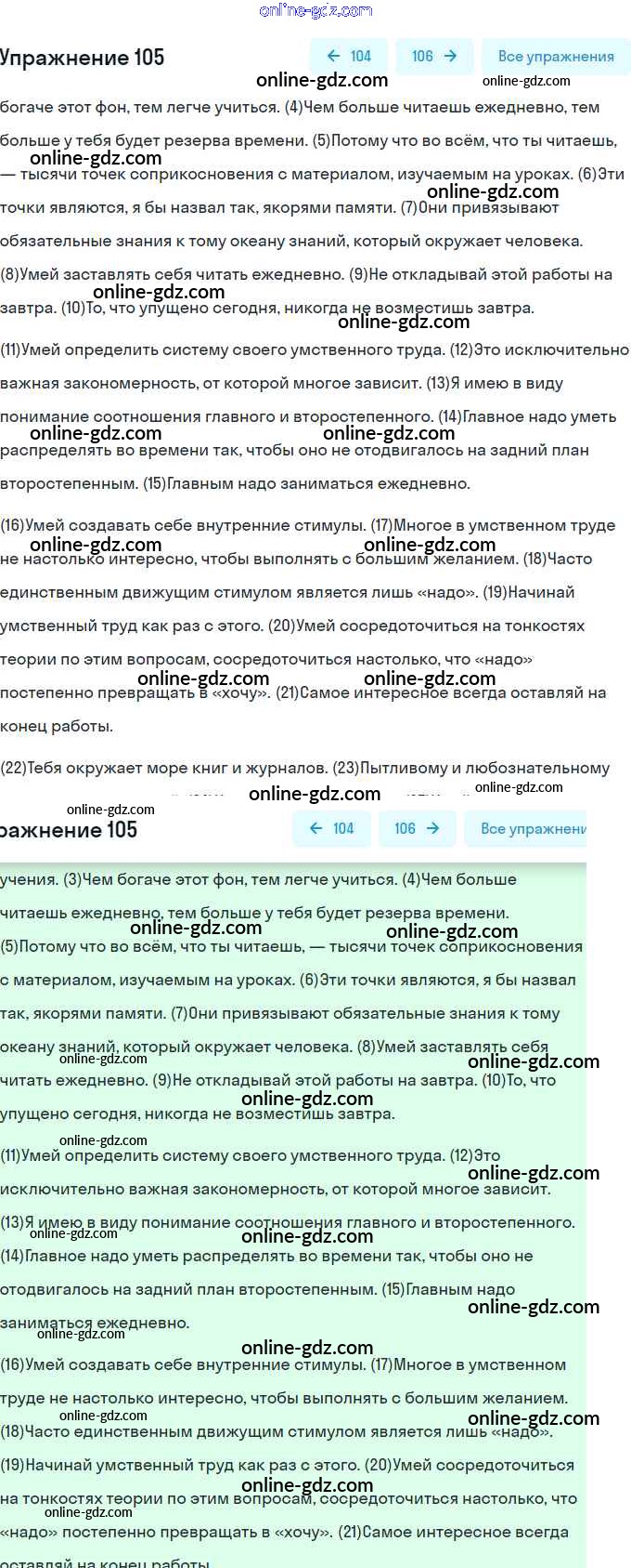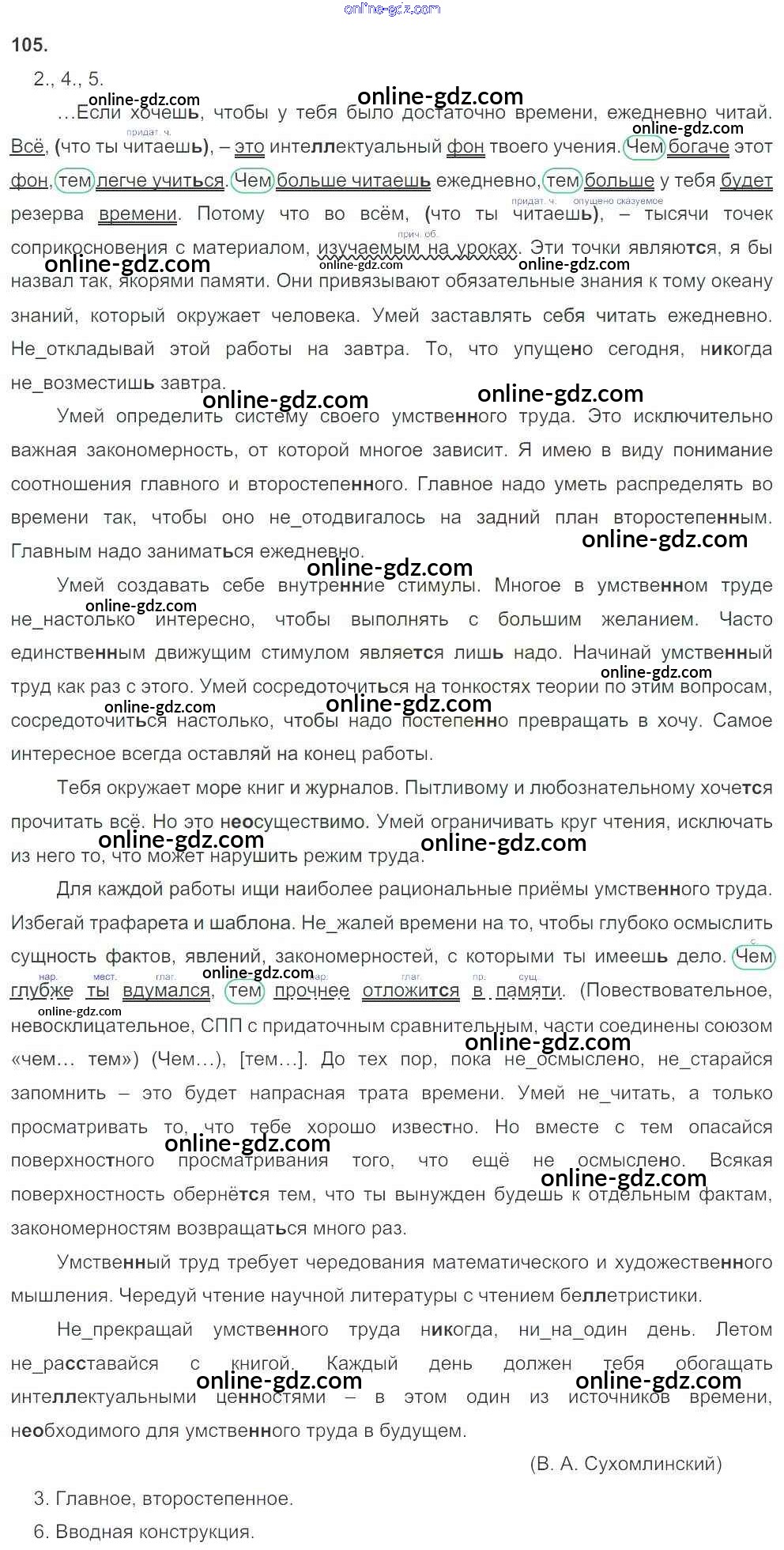 Готовые домашние задания по Русскому языку за 9 класс Рабочая тетрадь Литвинова Вертикаль 2016 - Упражнения 105