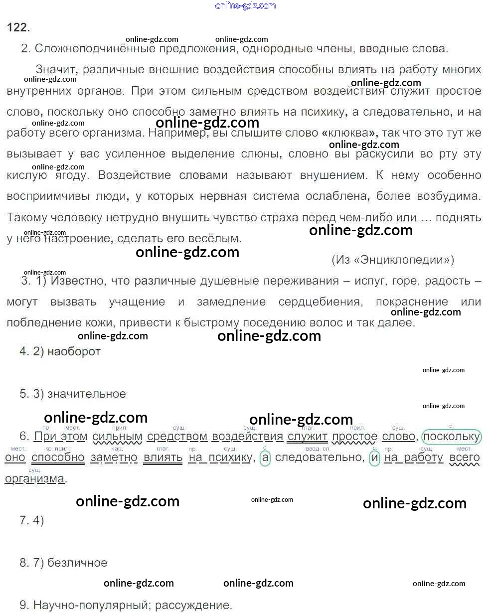 Готовые домашние задания по Русскому языку за 9 класс Рабочая тетрадь Литвинова Вертикаль 2016 - Упражнения 122
