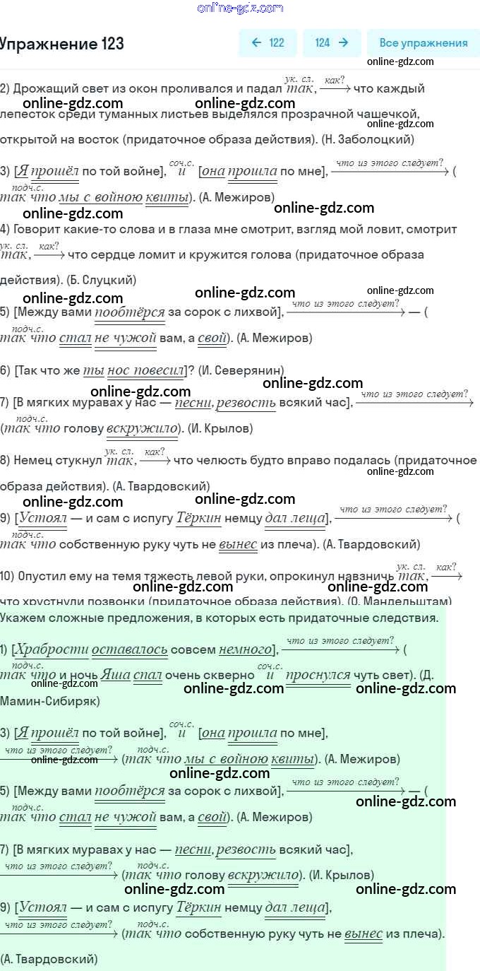 Готовые домашние задания по Русскому языку за 9 класс Рабочая тетрадь Литвинова Вертикаль 2016 - Упражнения 123
