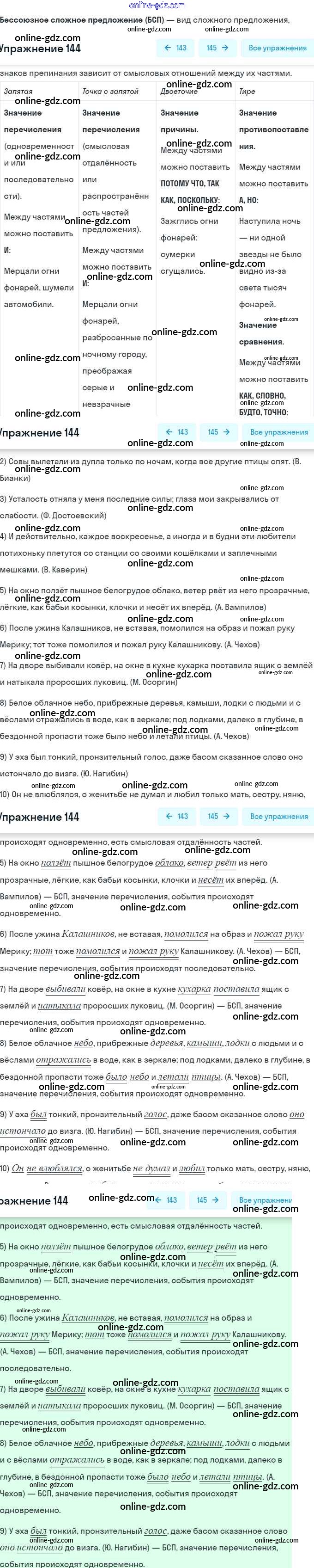 Готовые домашние задания по Русскому языку за 9 класс Рабочая тетрадь Литвинова Вертикаль 2016 - Упражнения 144