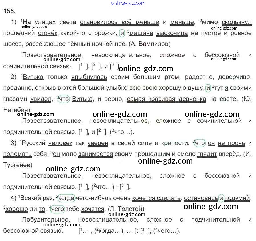 Готовые домашние задания по Русскому языку за 9 класс Рабочая тетрадь Литвинова Вертикаль 2016 - Упражнения 155