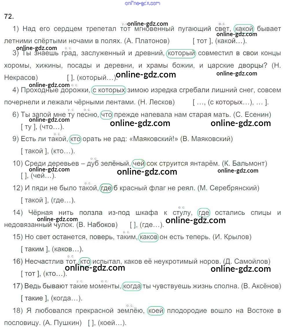 Готовые домашние задания по Русскому языку за 9 класс Рабочая тетрадь Литвинова Вертикаль 2016 - Упражнения 72