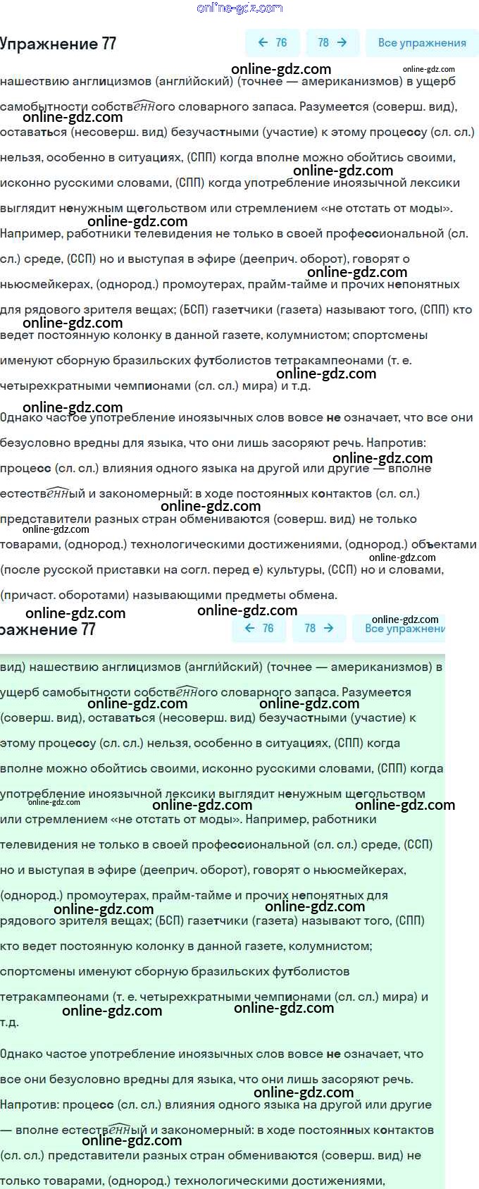 Готовые домашние задания по Русскому языку за 9 класс Рабочая тетрадь Литвинова Вертикаль 2016 - Упражнения 77