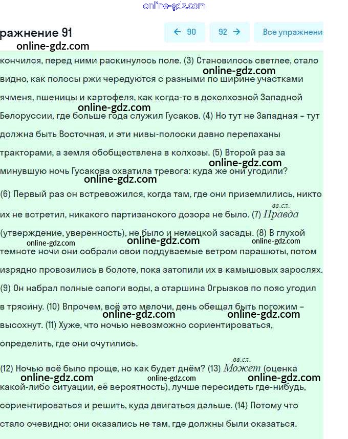 Готовые домашние задания по Русскому языку за 9 класс Рабочая тетрадь Литвинова Вертикаль 2016 - Упражнения 91