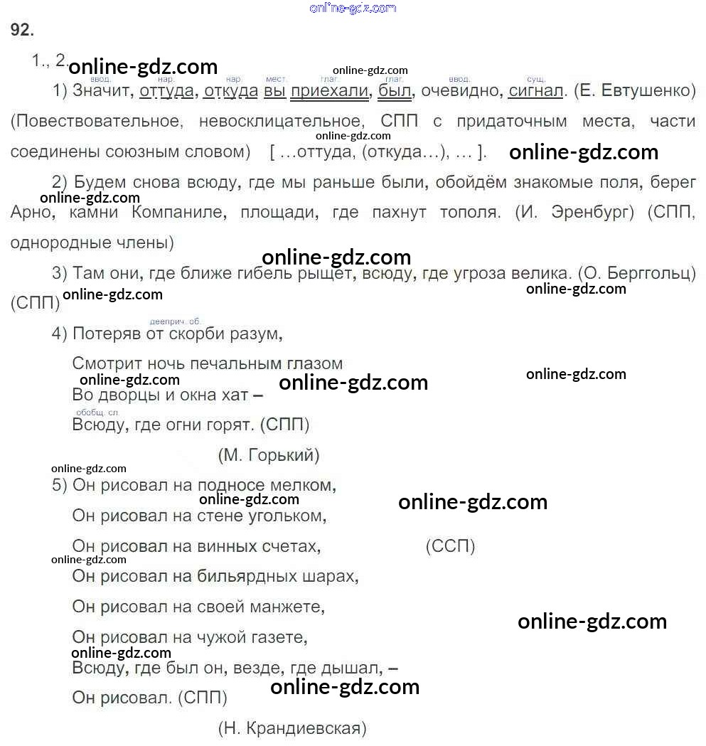 Готовые домашние задания по Русскому языку за 9 класс Рабочая тетрадь Литвинова Вертикаль 2016 - Упражнения 92