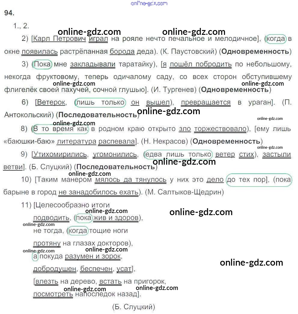 Готовые домашние задания по Русскому языку за 9 класс Рабочая тетрадь Литвинова Вертикаль 2016 - Упражнения 94