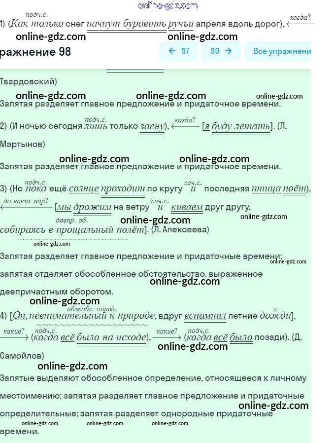Готовые домашние задания по Русскому языку за 9 класс Рабочая тетрадь Литвинова Вертикаль 2016 - Упражнения 98