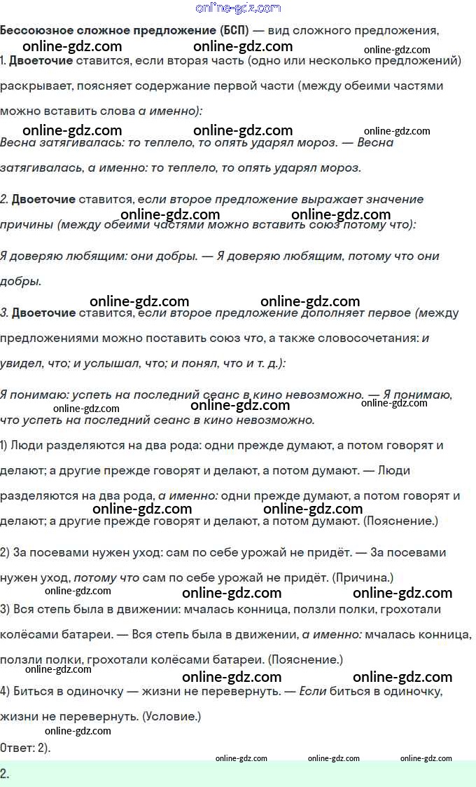 итоговый тест по теме «бессоюзное сложное предложение» / вариант 2 / 9