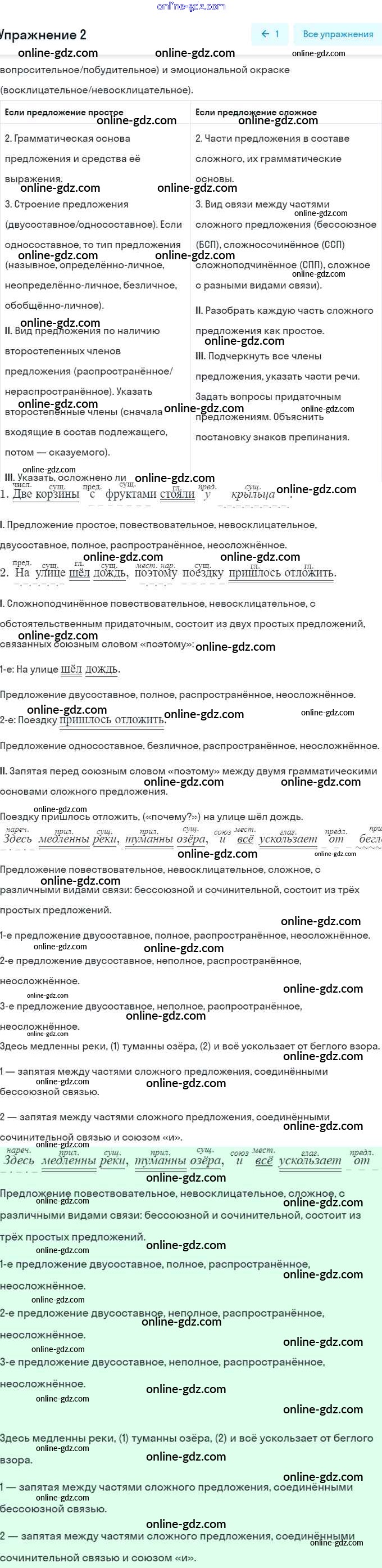 Готовые домашние задания по Русскому языку за 9 класс Рабочая тетрадь Загоровская, Чаплыгина 2017 - §32. Синтаксический и пунктуационный разбор сложного предложения с различными видами связи 2
