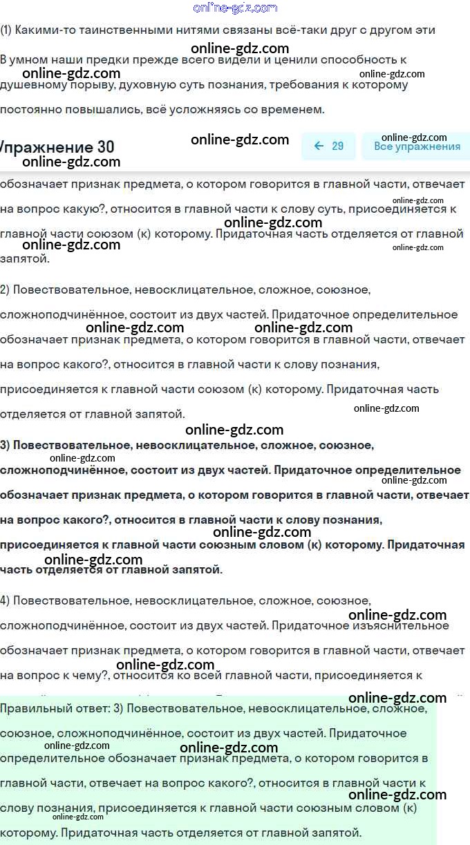 Готовые домашние задания по Русскому языку за 9 класс Тесты, творческие работы, проекты Нарушевич, Голубева 2019 - Вариант 1 Сложноподчинённое предложение 30