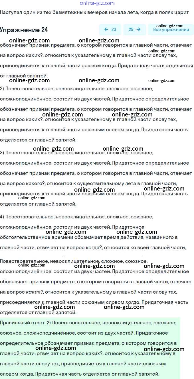 Готовые домашние задания по Русскому языку за 9 класс Тесты, творческие работы, проекты Нарушевич, Голубева 2019 - Вариант 2 Сложноподчинённое предложение 24
