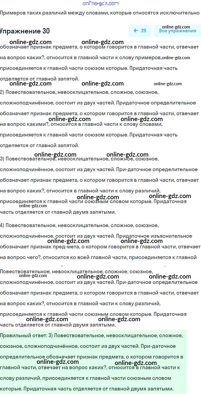 Готовые домашние задания по Русскому языку за 9 класс Тесты, творческие работы, проекты Нарушевич, Голубева 2019 - Вариант 2 Сложноподчинённое предложение 30