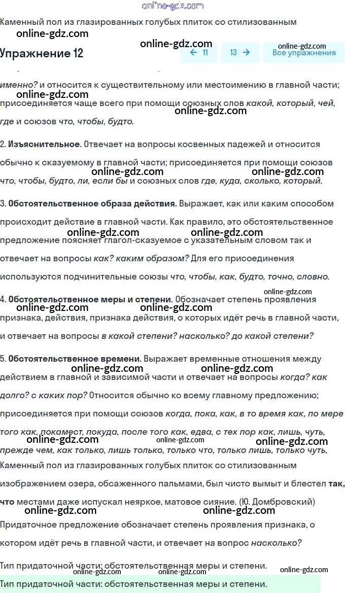 Готовые домашние задания по Русскому языку за 9 класс Тесты, творческие работы, проекты Нарушевич, Голубева 2019 - Вариант 1 Сложноподчинённое предложение 12