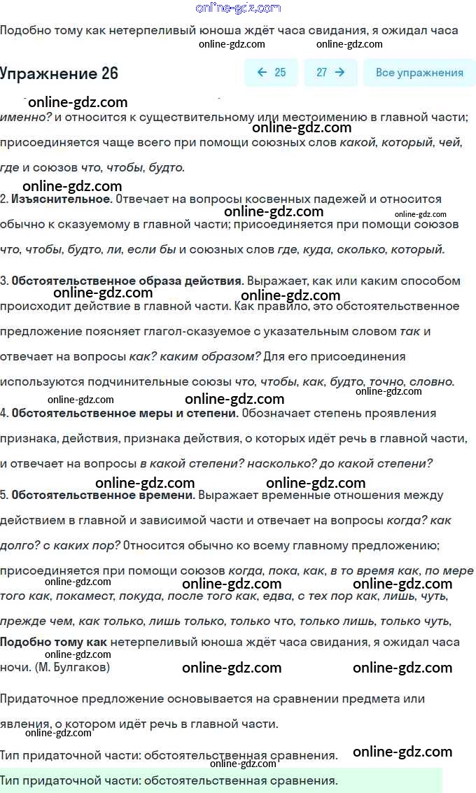 Готовые домашние задания по Русскому языку за 9 класс Тесты, творческие работы, проекты Нарушевич, Голубева 2019 - Вариант 1 Сложноподчинённое предложение 26