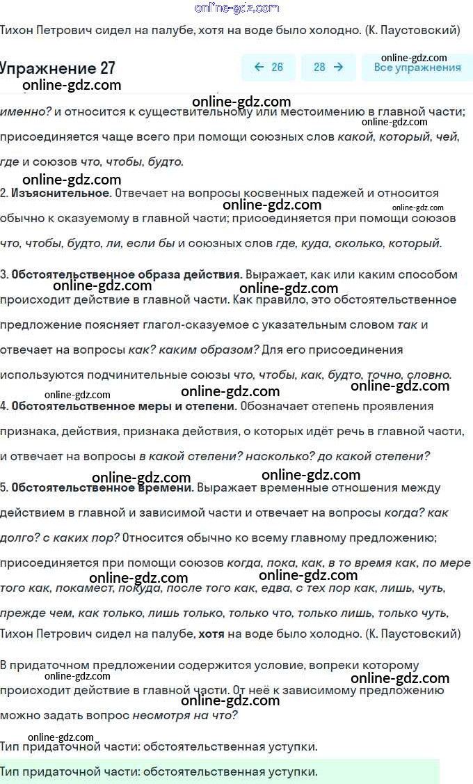 Готовые домашние задания по Русскому языку за 9 класс Тесты, творческие работы, проекты Нарушевич, Голубева 2019 - Вариант 1 Сложноподчинённое предложение 27