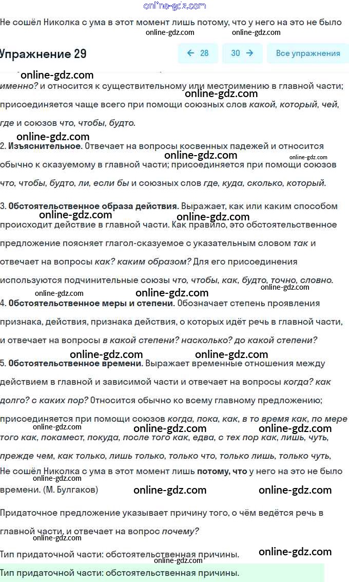 Готовые домашние задания по Русскому языку за 9 класс Тесты, творческие работы, проекты Нарушевич, Голубева 2019 - Вариант 1 Сложноподчинённое предложение 29