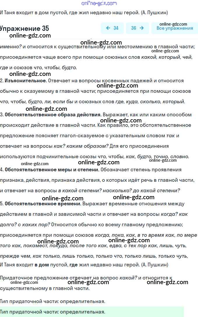 Готовые домашние задания по Русскому языку за 9 класс Тесты, творческие работы, проекты Нарушевич, Голубева 2019 - Вариант 1 Сложноподчинённое предложение 35