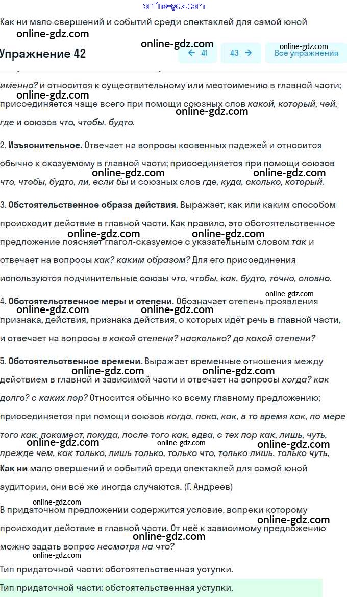 Готовые домашние задания по Русскому языку за 9 класс Тесты, творческие работы, проекты Нарушевич, Голубева 2019 - Вариант 1 Сложноподчинённое предложение 42